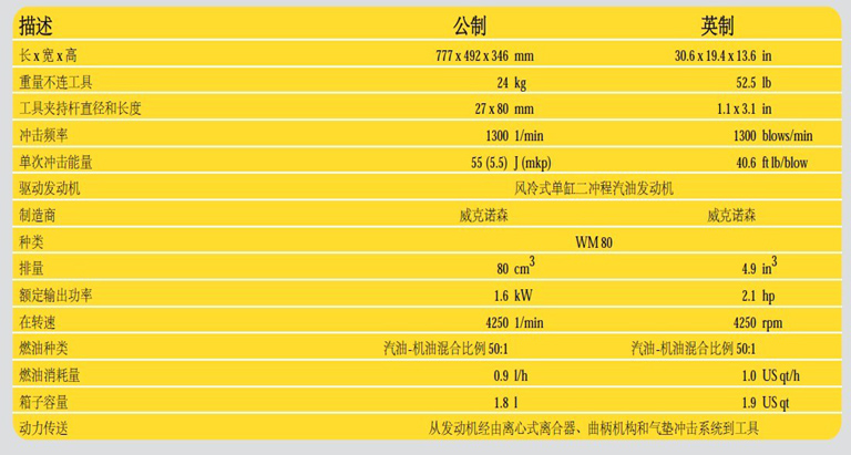 耗油量低、油箱容量大,可長時間持續運作,可在工作現場用小型油脂槍向中央注油嘴加注油脂,對沖擊系統進行簡單的維護,工具夾持可配用不同的工具,不需要依賴壓縮空氣和壓縮機,可隨時隨地使用輔助手柄使機器更易使用。